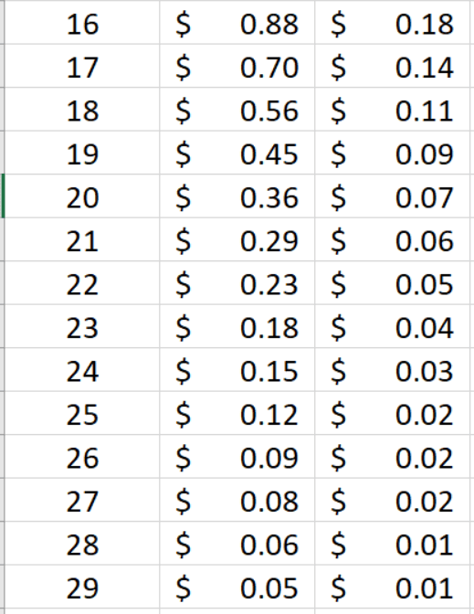 ¿Cómo sería una racha perdedora sobrenatural con este sistema? ¡Se necesitarían 29 pérdidas sucesivas hasta que ya no pudieras apostar el mínimo de $0,01!
